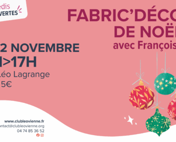 🎨 Samedi Découverte – Atelier Céramique de Noël avec Sylvie Le samedi 8 novembre, le Centre Artistique du Club Léo …