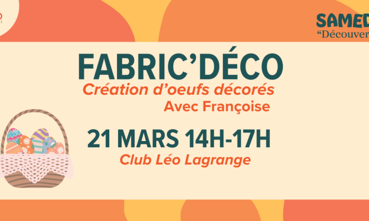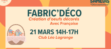 🎨 Samedi découverte Fabric’Déco : création d’œufs décorés avec Françoise Le Club Léo Lagrange de Vienne vous invite à un …