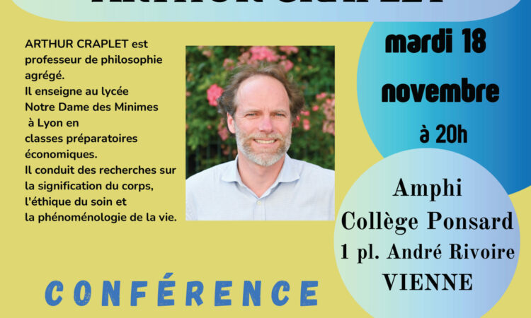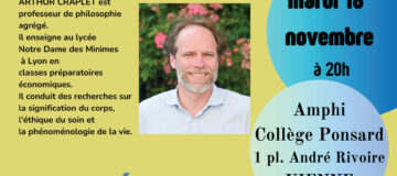 Prochain rendez-vous du Club Philo Arthur CRAPLET, professeur de philosophie,vous propose une conférence intitulée : « Que vaut une vie …