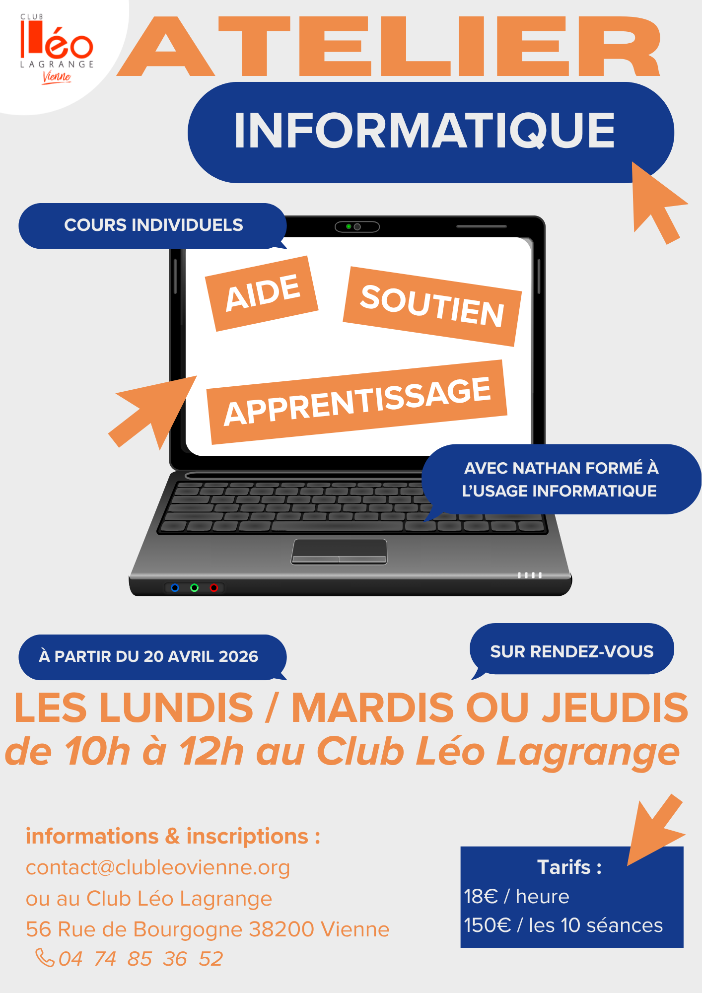 Bonne nouvelle ! À partir du 20 avril, les cours d’informatique reprennent au Club Léo Lagrange, à Vienne.
