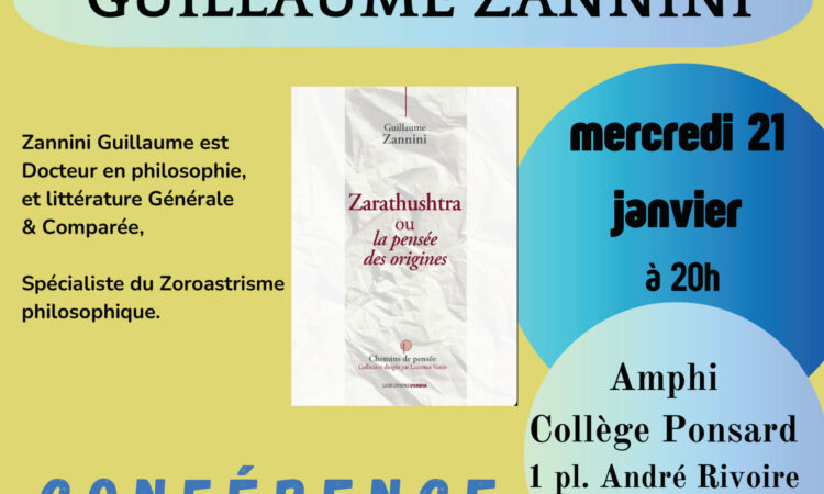 Prochain rendez-vous du Club Philo « Zarathushtra ou la sagesse pré-socratique » de Guillaume Zannini – Docteur en philosophie. Mercredi 21 janvier, …