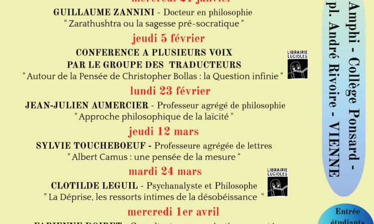 Prochain rendez-vous du Club Philo « Conférence à plusieurs voix par le groupe des traducteurs » Autour de la Pensée de Christopher …