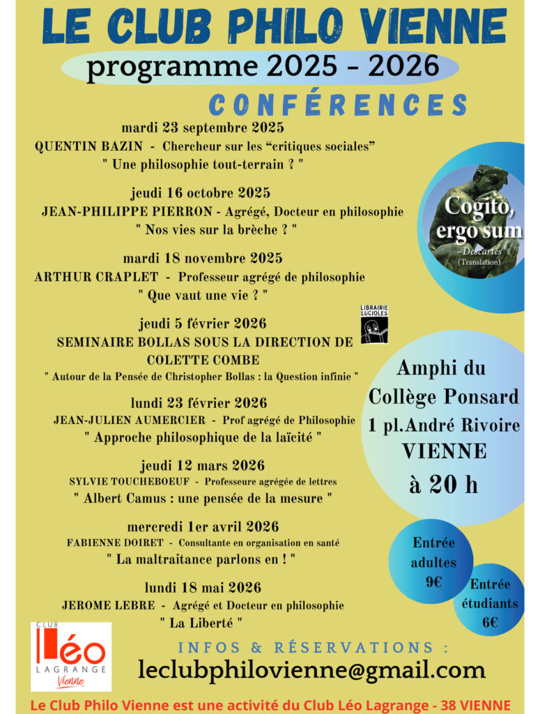 Mardi 18 novembre 20h, à l’amphi du Collège Ponsard