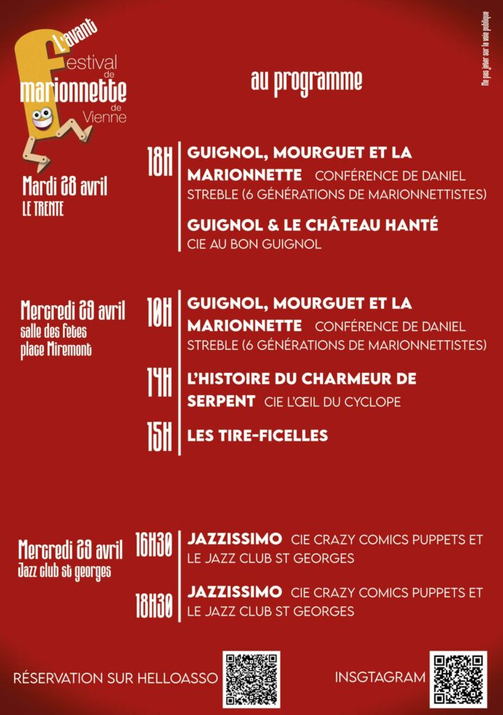 Nous sommes heureux de vous annoncer qu’il sera présenté à l’occasion de l’avant Festival de la Marionnette à Vienne, les 28 et 29 avril. Un moment important où nos artistes auront l’opportunité de partager leurs créations avec le public.
