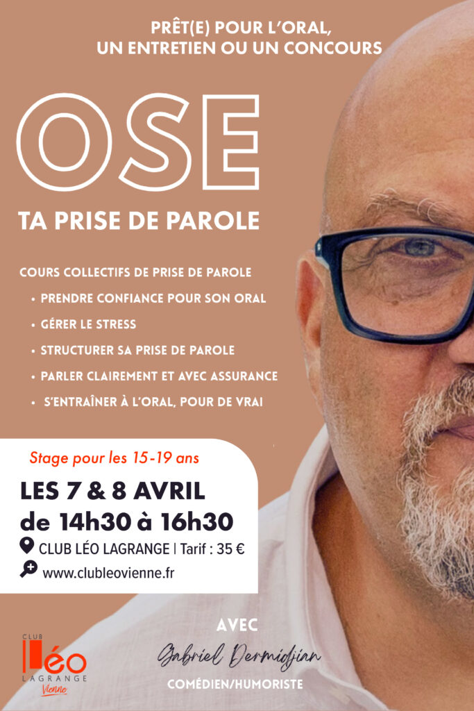 Pour y répondre, nous proposons un stage de prise de parole spécialement conçu pour les 15–19 ans, les 7 et 8 avril, au Club Léo Lagrange de Vienne.