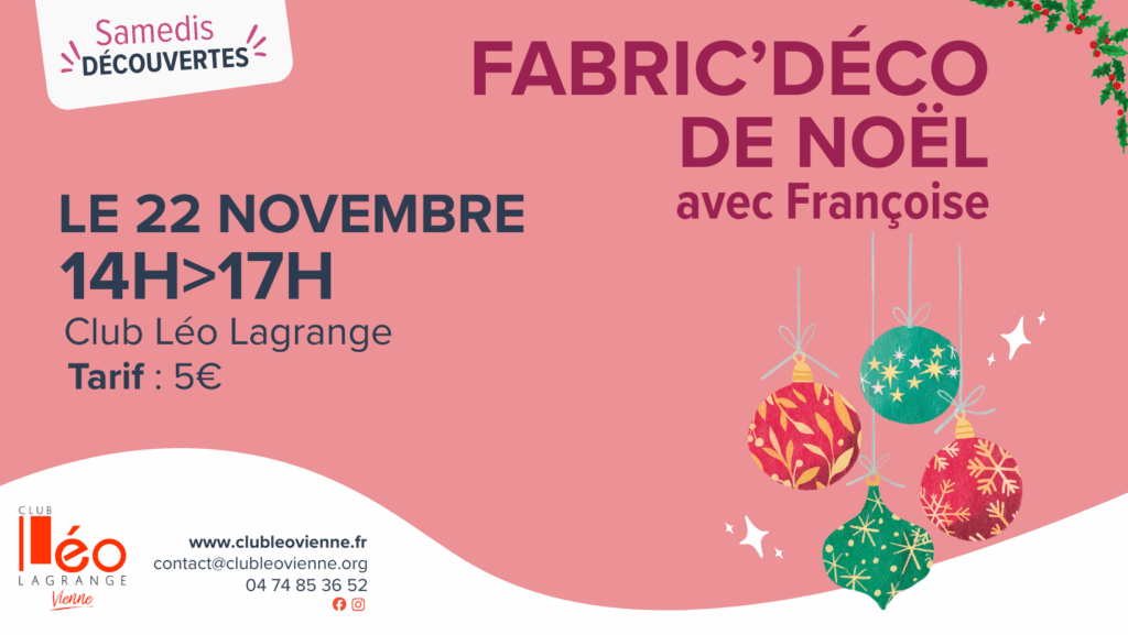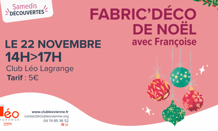 🎄 Samedi Découverte – Atelier Fabric Déco de Noël avec Françoise 🎄