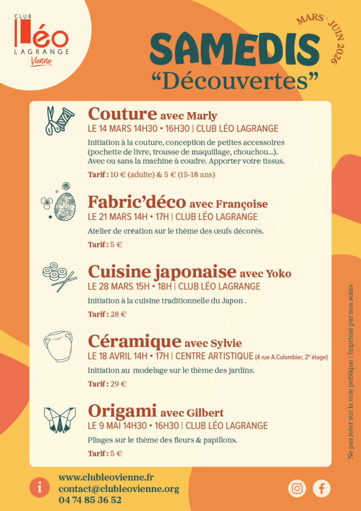 Samedi 14 mars de 14h30 à 16h30 au Club Léo Lagrange
